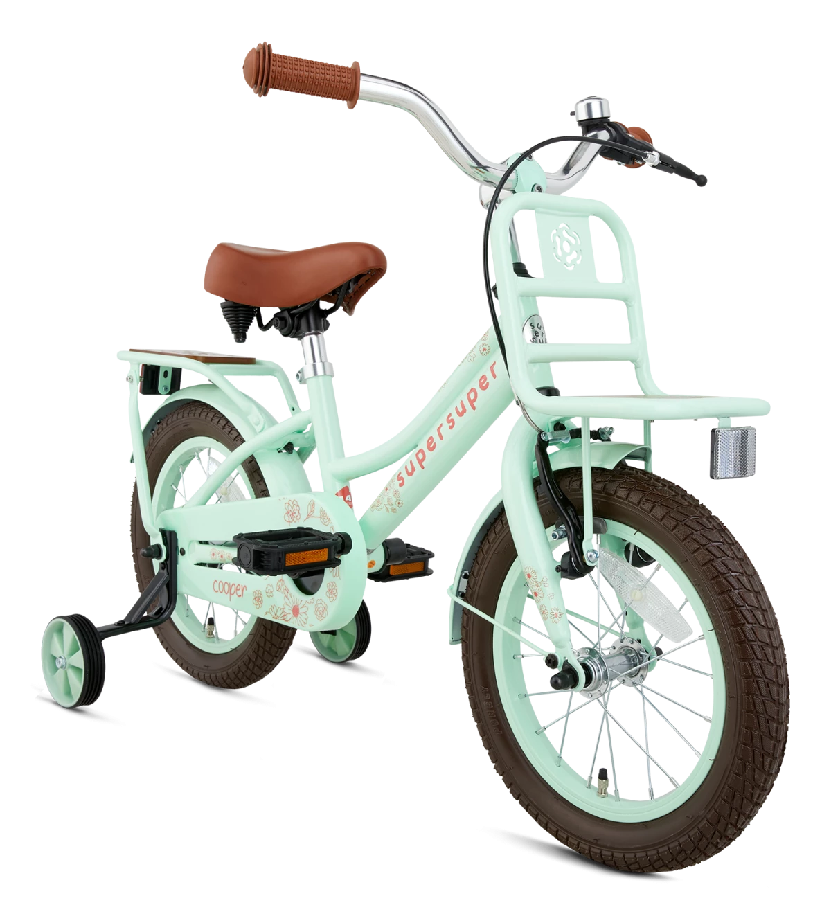 Cooper Bamboo er en meget flot pigecykel i elegant retro stil med trendy twist – bambus plader både på frontladet og bagagebæreren, hvilket giver cyklen mere moderne og miljørigtigt look. Cyklen er med mørkebrune dæk, der matcher ideelt cyklens sarte pistaciegrønne farve. Cyklen leveres med støttehjul, som kan tages af, når barnet er fortrolig med at cykle selv.